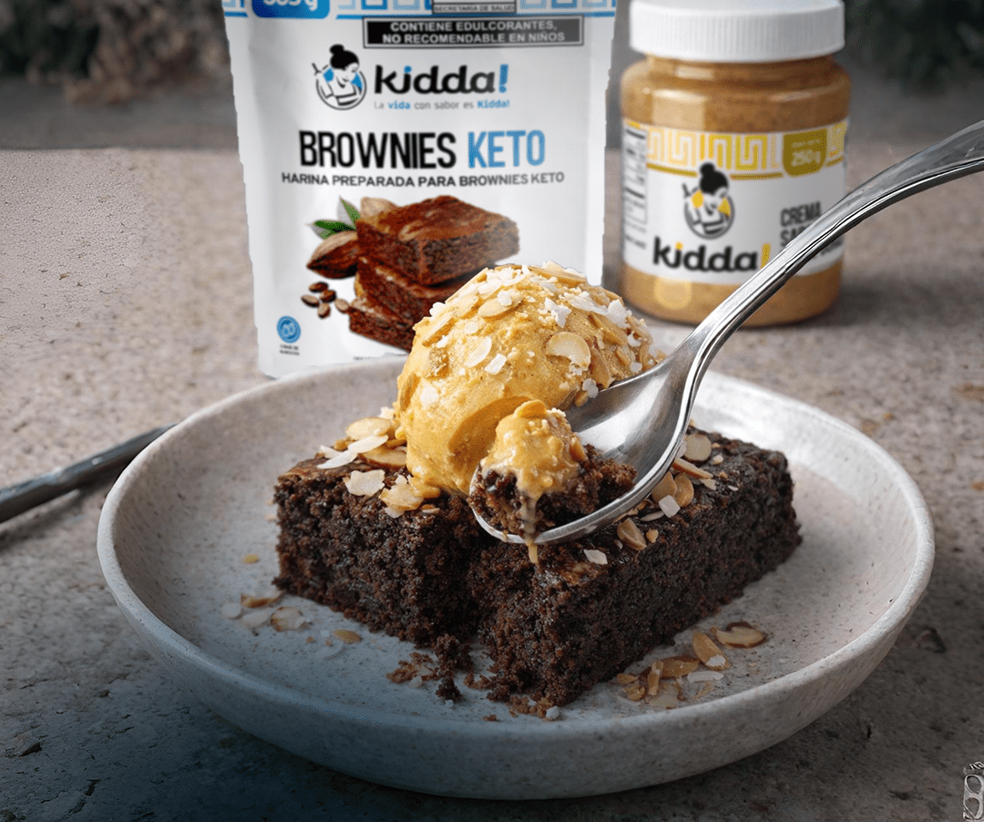 ¡NO CREERÁS QUE ESTE POSTRE ES KETO! Para el brownie: Harina preparada para brownies keto Kidda! (320 g). Huevos (4). Materia grasa …