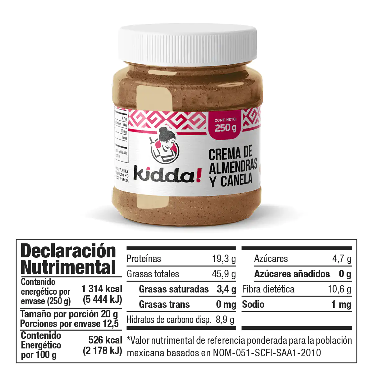 Contiene: almendra. Puede contener trazas de cacahuate, nuez de la india, pistache, avellana y ajonjolí. Este producto no contiene azúcar añadida. Conservar en lugar fresco y seco, alejado de la luz solar directa.