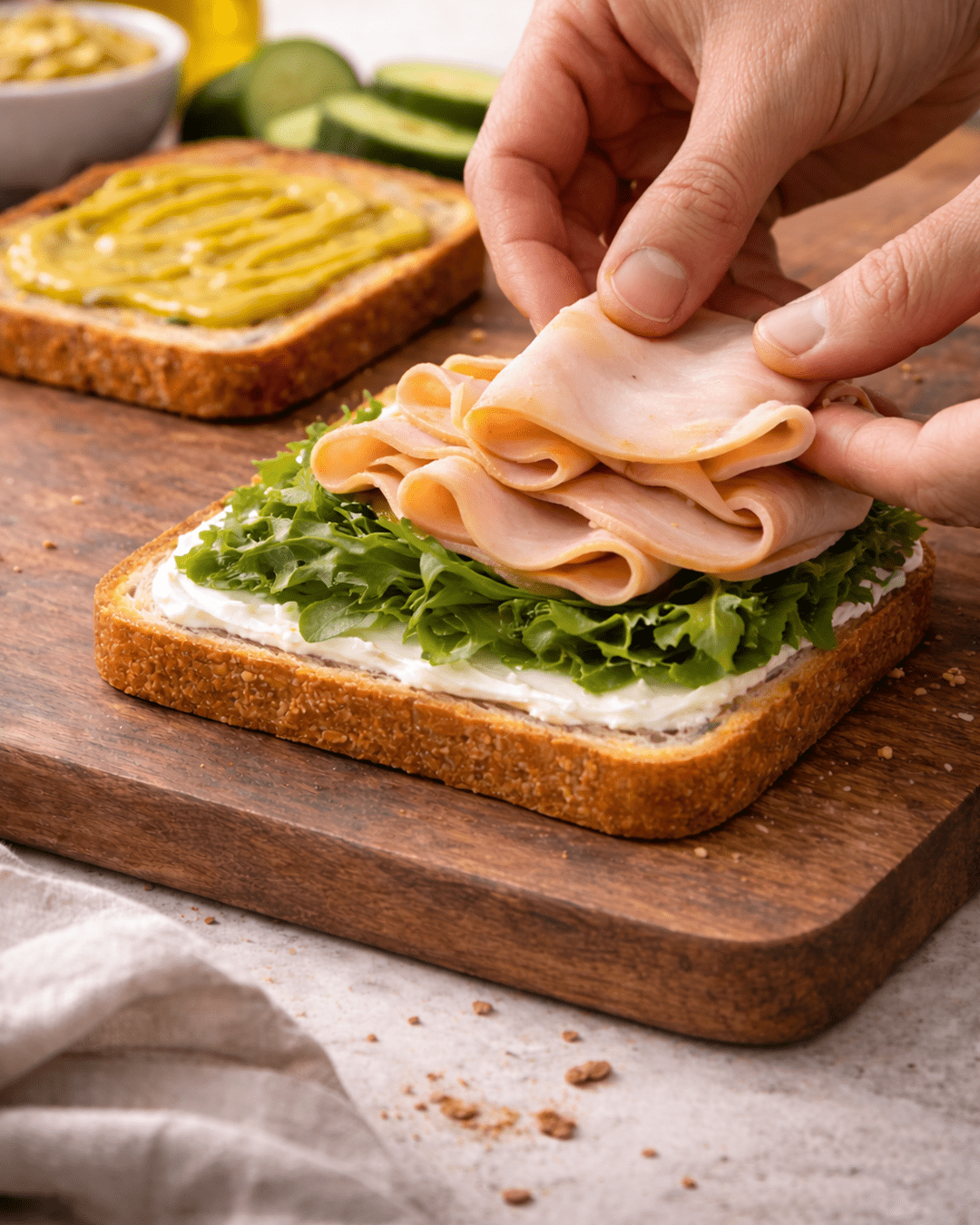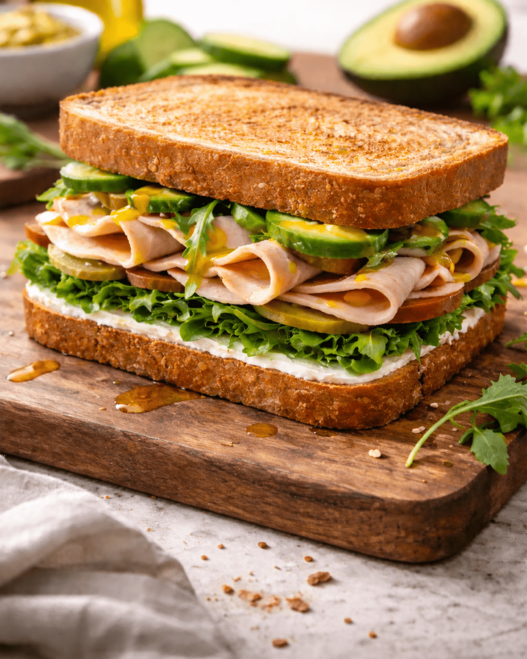 Opción vegana: Puedes reemplazar el pavo por tofu grillado o portobello salteado.